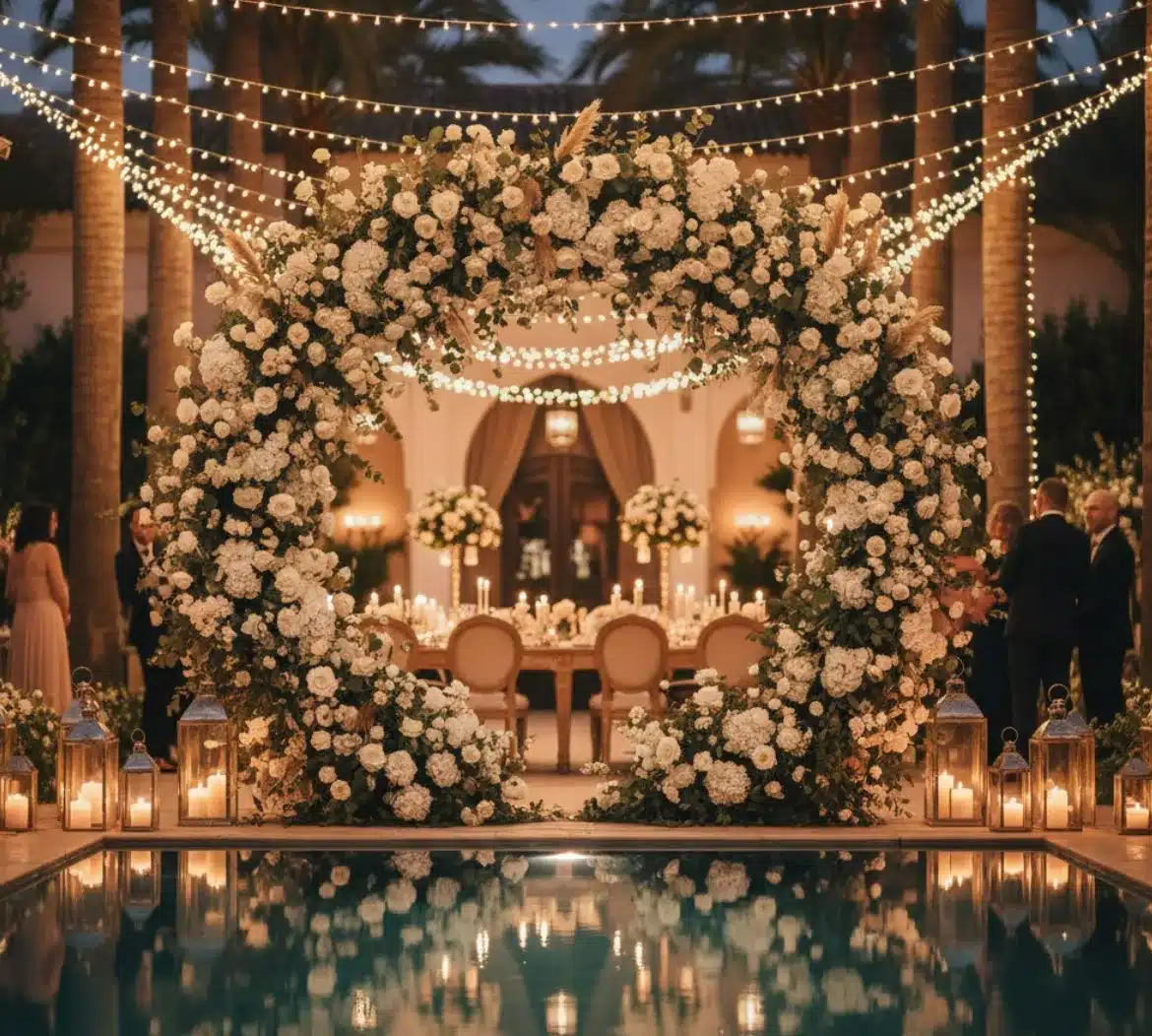 Frame the most important moment of your life with our stunning Floral ceremony arch Marrakech, creating a breathtaking backdrop for your vows that will define your wedding album. Since 90% of your ceremony photos will feature this structure, we ensure it is dressed to impress with “Full Lush” coverage on the front face. We use a combination of premium roses, hydrangeas, and cascading greenery to create a dense, luxurious frame that smells as amazing as it looks.