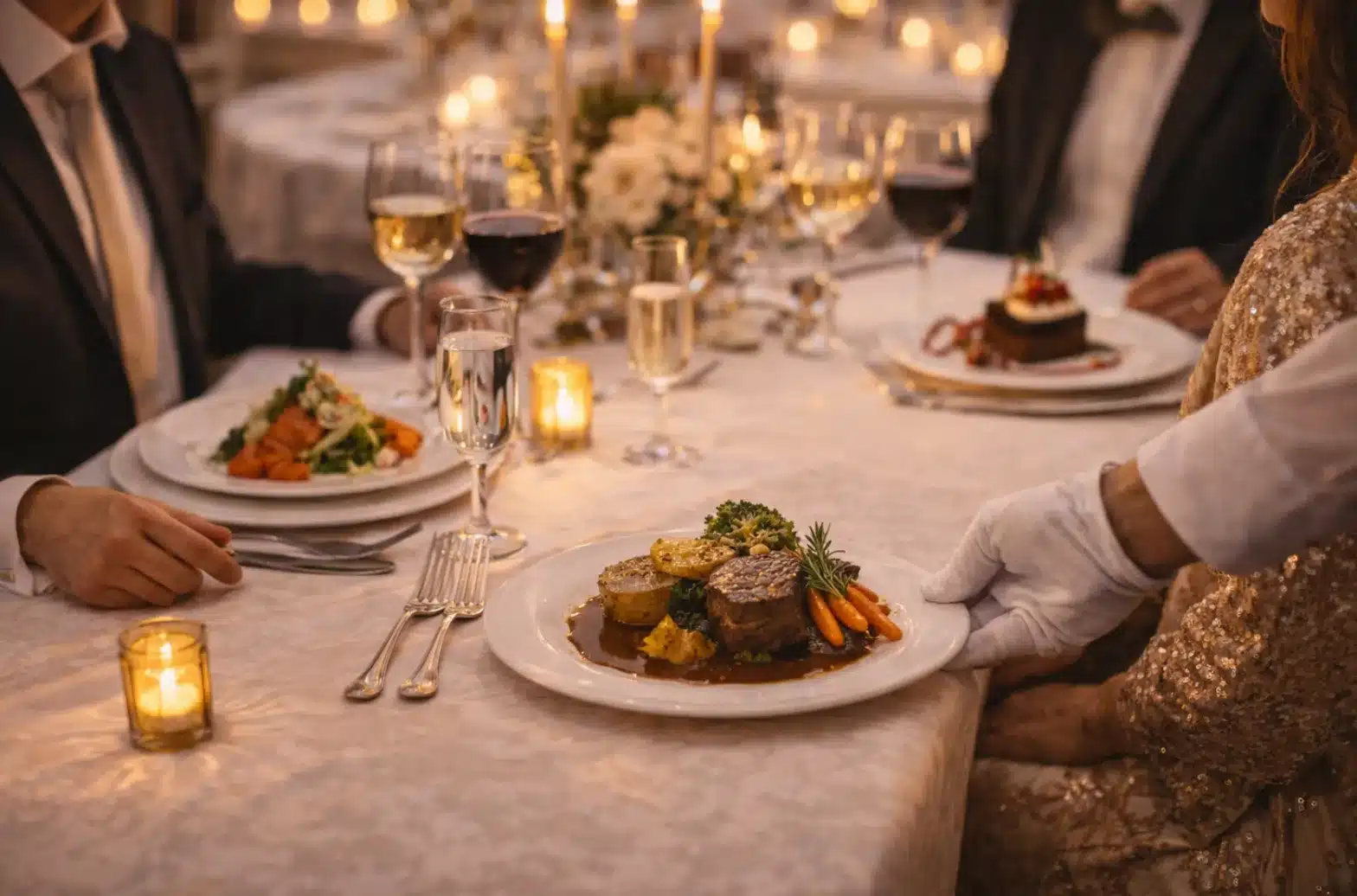 Control and elegance. It is the safest bet for formal weddings. It ensures portion control, beautiful presentation on every plate, and a rhythm to the evening that keeps the event running on time.