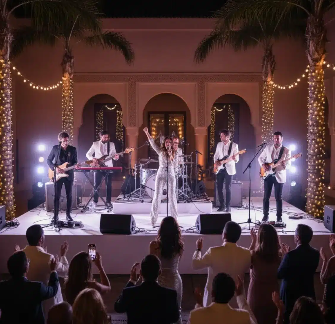 You can’t fake the energy of live instruments. A 5-piece band interacts with the crowd, making the reception feel like a private concert. The drums and vocals bring a physical energy that a speaker system just can’t match.