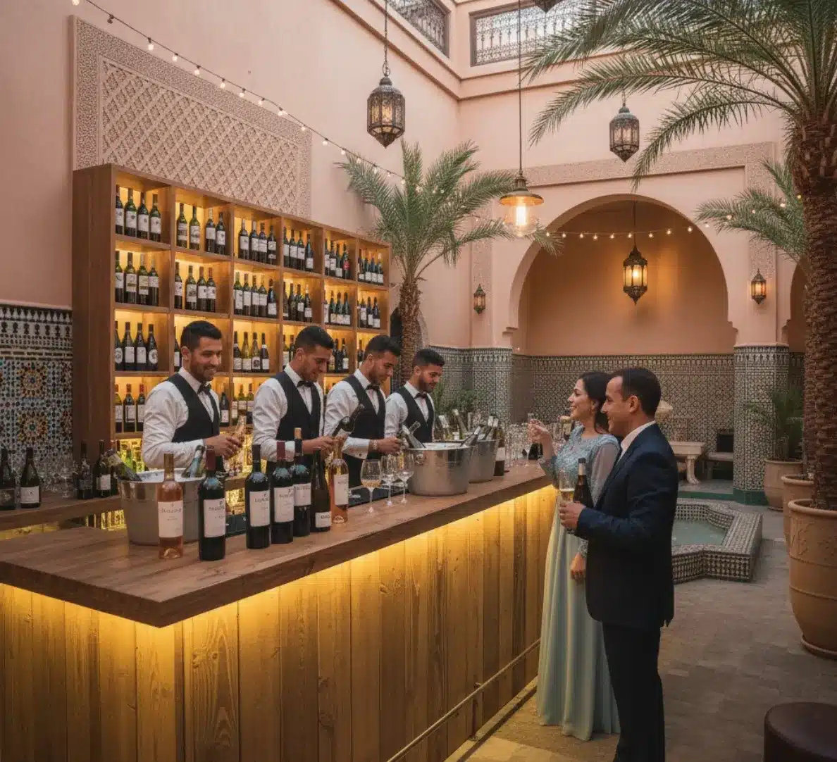 Discover the hidden gems of local viticulture with our Beer and wine open bar Marrakech, a solid, budget-friendly option that surprises many international guests. Morocco produces surprisingly excellent wine, particularly from the Meknes region, and we serve these “Terres Rouges” or “Volubilia” varietals alongside cold, crisp Casablanca beers. This one-hour package provides a reliable, high-quality alcohol service that covers the essentials perfectly.