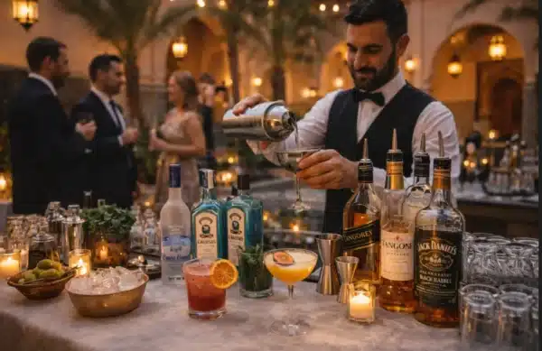 Elevate your party to VIP status with our Premium open bar Marrakech, featuring only top-shelf international brands for the discerning drinker. We stock the bar with heavy hitters like Grey Goose, Hendricks, Black Label, and Havana 7, ensuring that every sip is smooth and sophisticated. But we go beyond just pouring spirits; we include a professional mixologist to craft 2-3 signature cocktails, customized and named after the event or the couple.