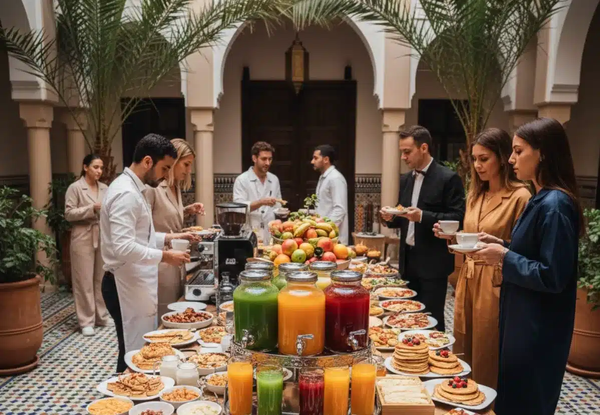Help your guests bounce back the next day with our specially designed Recovery brunch catering Marrakech. We focus on hydration and comfort, offering fresh Moroccan orange juice, strong coffee, and the restorative power of carbs. The vibe is kept intentionally casual and relaxed, allowing guests to roll in whenever they wake up, grab a plate, and debrief on the night before without feeling rushed.