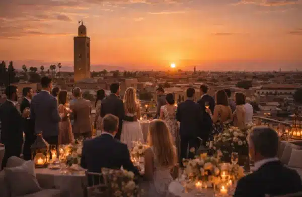 Capture the beating heart of the Red City from above with our exclusive Rooftop wedding venue Marrakech, the ultimate ice-breaker for your wedding week. This space allows you to experience the chaotic, vibrant energy of the Medina below without the noise or the crowds, all framed by the iconic silhouette of the Koutoubia mosque. It is the perfect “Welcome to Marrakech” moment, offering guests a panoramic introduction to the city while they sip mint tea or cocktails in total comfort.
