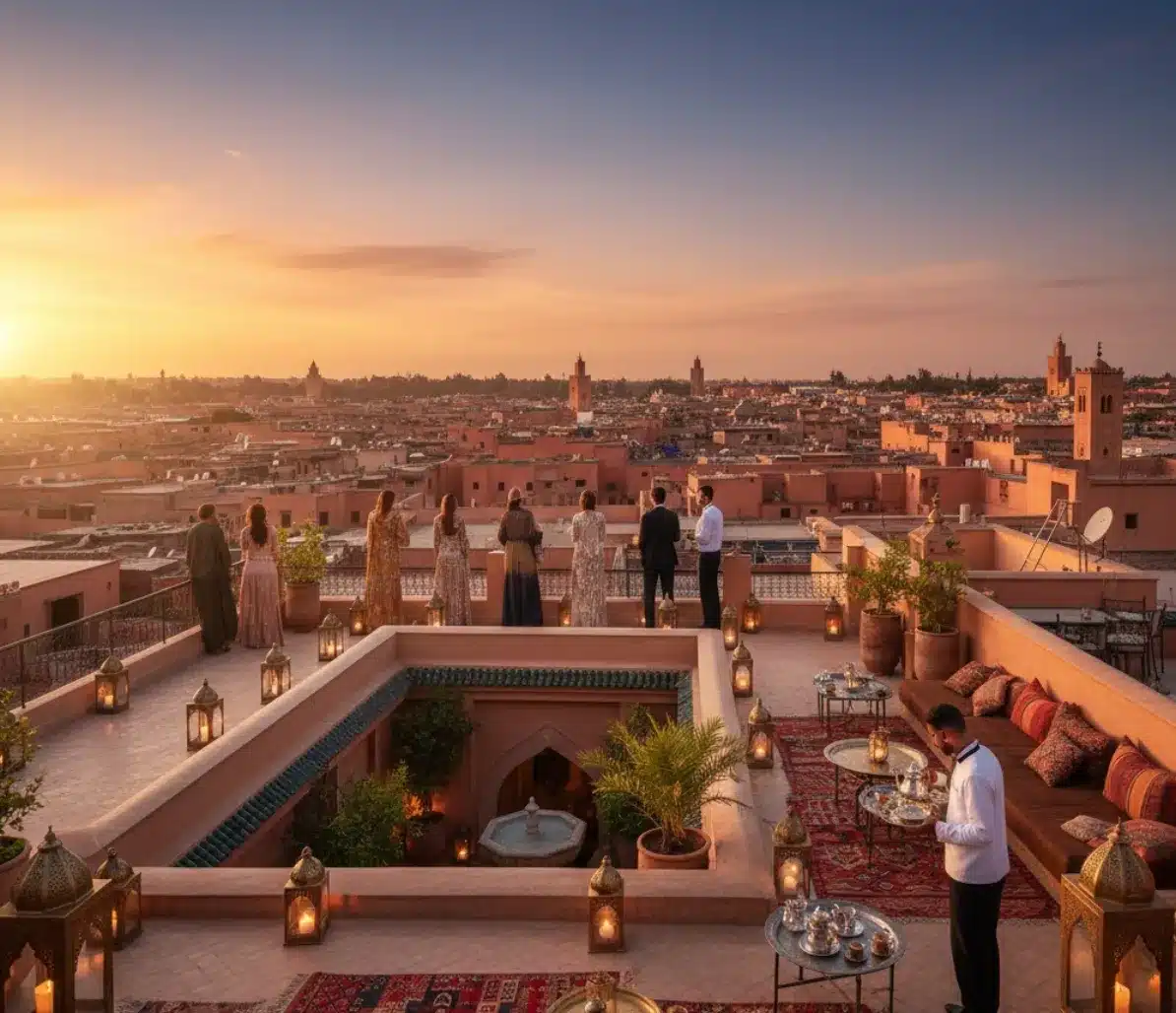 • Amenities: Use of in-house furniture (Moroccan salons) and misting fans on terrace.